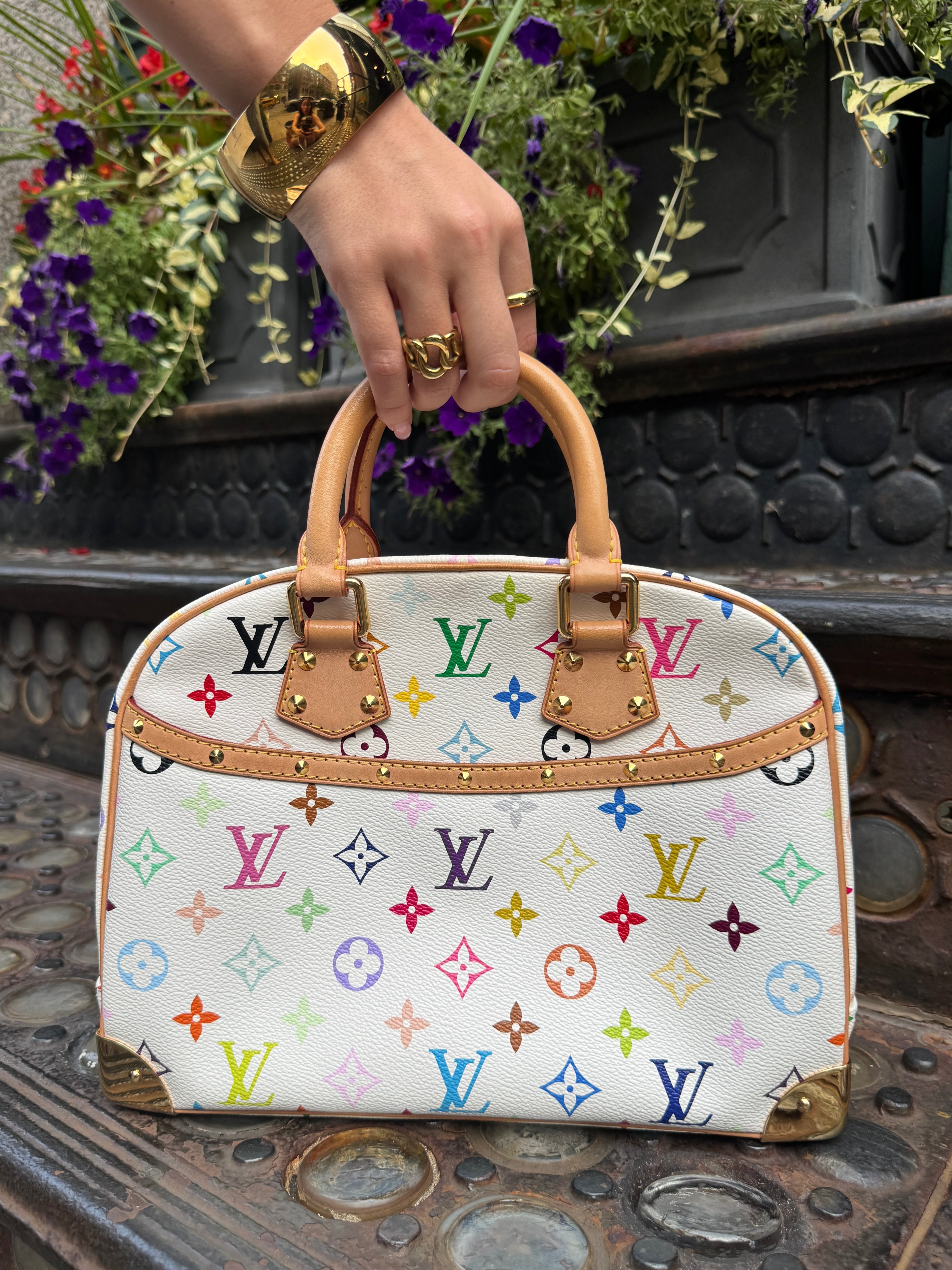 Louis Vuitton Vintage 2005 Takashi Murakami Blanc / White Multicolor Monogram Trouville Top Handle Bag