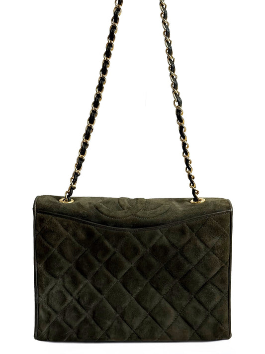 Chanel Vintage Green Quilted Quilted Suede CC Logo Full Flap Shoulder Bag w 24K GPHW