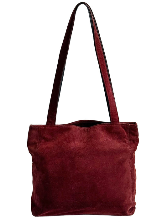 Chanel Vintage Burgundy Suede CC Logo Small Shoulder Tote Bag