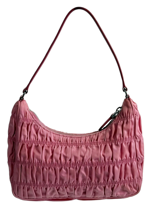 Prada Ruched Tessuto Nylon Begonia Pink Mini Small Re-Edition Shoulder Bag