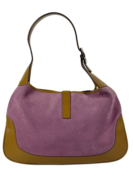 Gucci Vintage Pink Suede Brown Leather Trim Medium Jackie O Bag