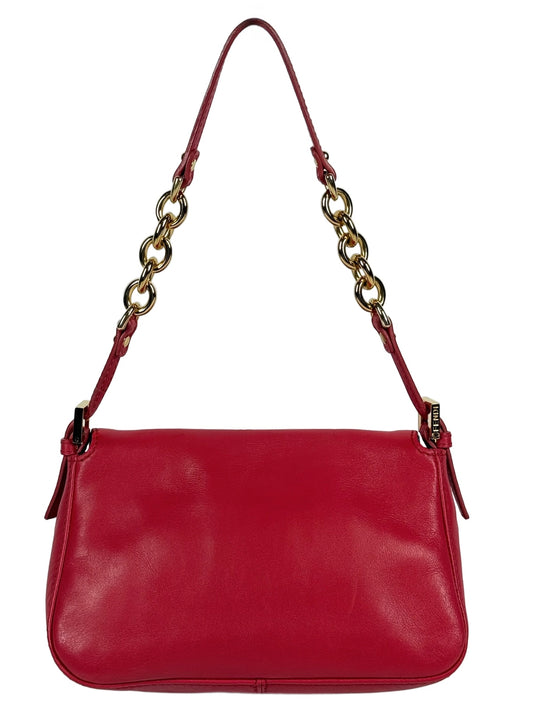 Fendi Vintage Coral Pink Leather Snakeskin Logo Mini Mamma Shoulder Baguette w Chain Strap