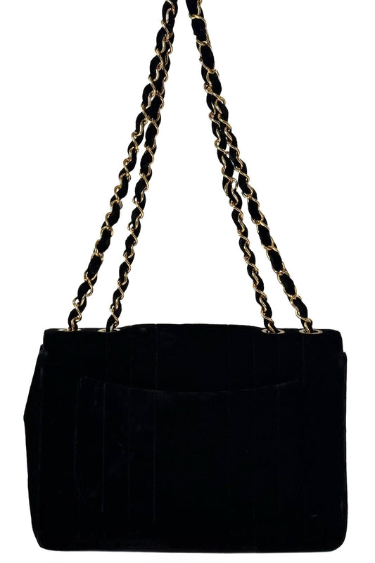 Chanel Vintage 90s Black Velour Velvet Quilted Jumbo Maxi CC Flap Bag w 24K GPHW