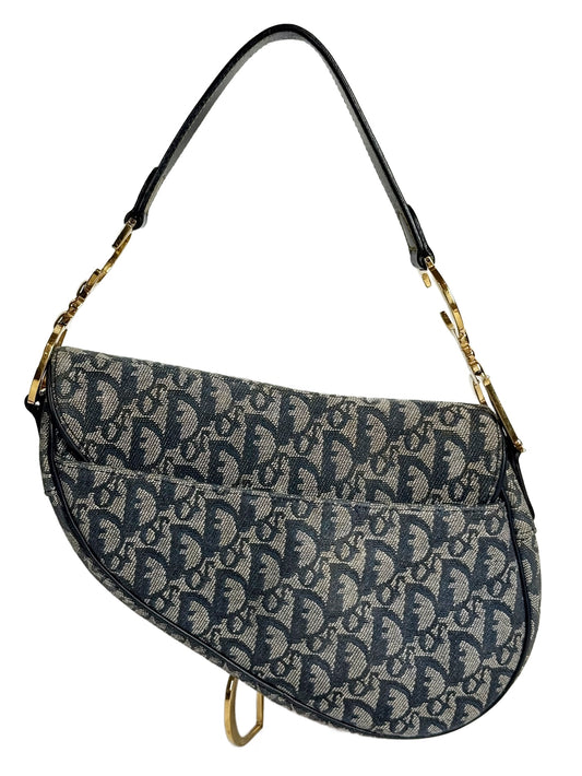 Dior Vintage 2002 Navy Blue Trotter Monogram Medium Saddle Bag