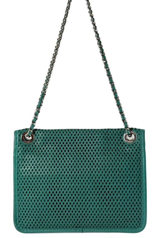 Chanel Turquoise Perforated Leather Square Flap Bag
