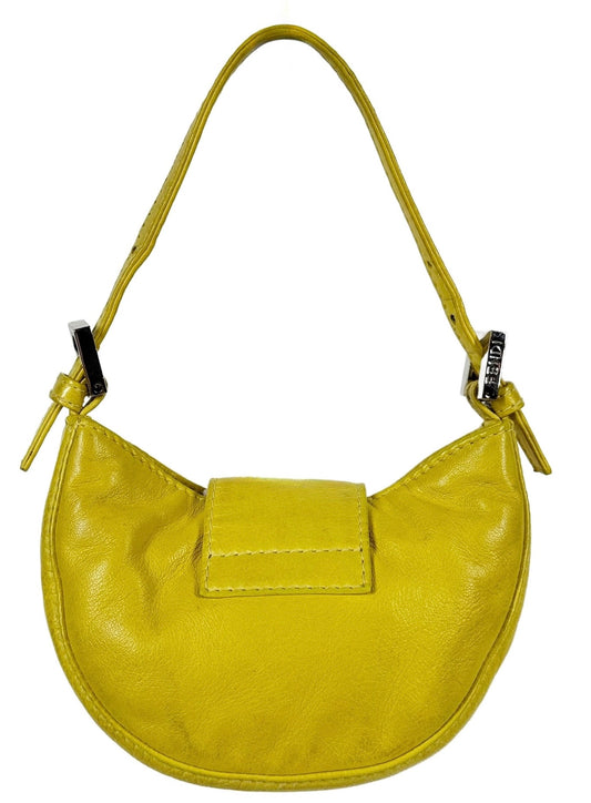 Fendi Vintage Yellow Lambskin Green Logo Mini Croissant Baguette