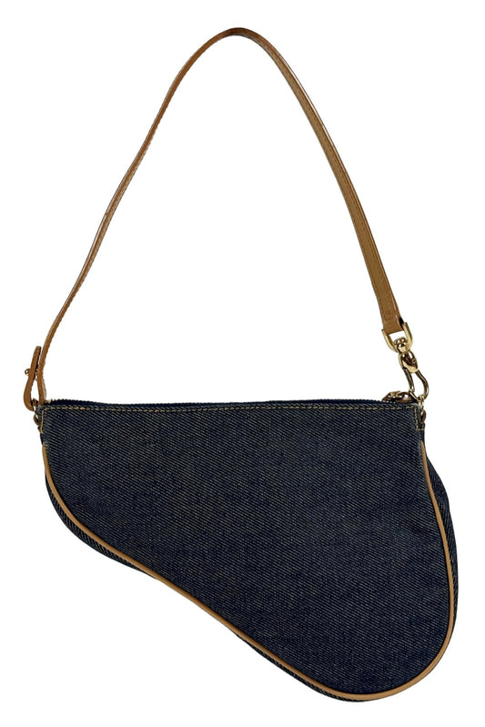 Dior Vintage 2001 Blue Denim Mini Saddle Pochette Shoulder Bag