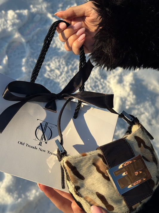 Fendi Vintage White Leopard Print Pony Hair Mini Croissant Baguette