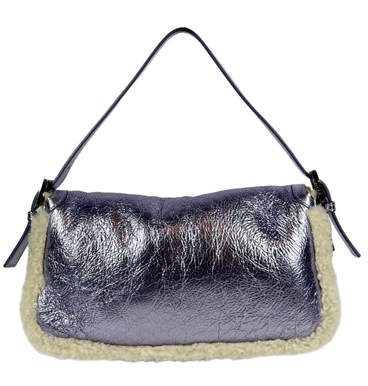 Fendi Metallic Purple Calfskin Shearling Trim Shoulder Baguette