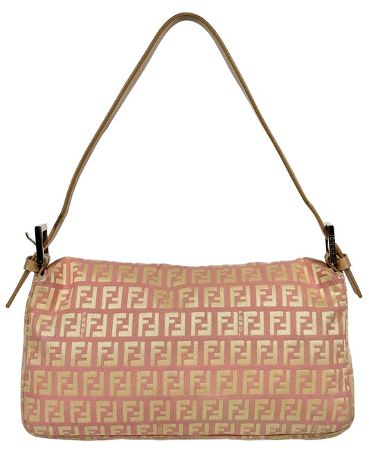 Fendi Vintage Pink & Yellow Zucca Monogram Shoulder Baguette Bag