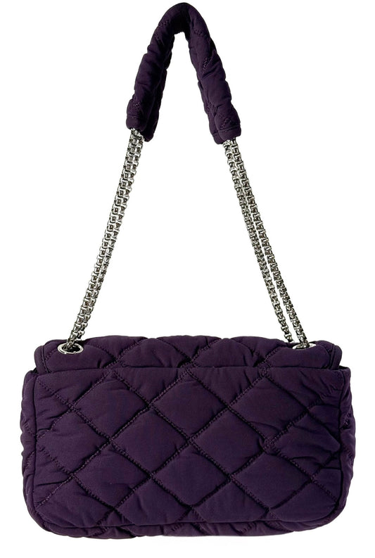 Chanel Vintage Purple Nylon Bubble Quilted Small Shoulder Flap Bag