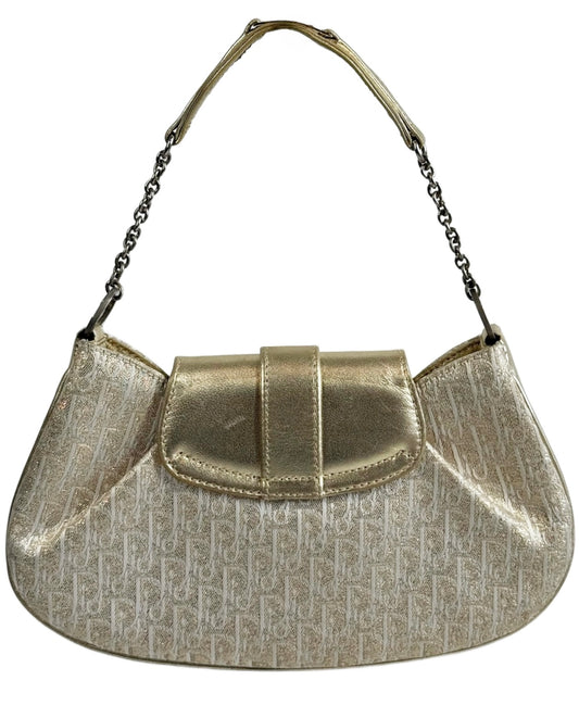 Dior Vintage 2002 Metallic Gold Trotter Monogram Mini Evening Pochette Bag