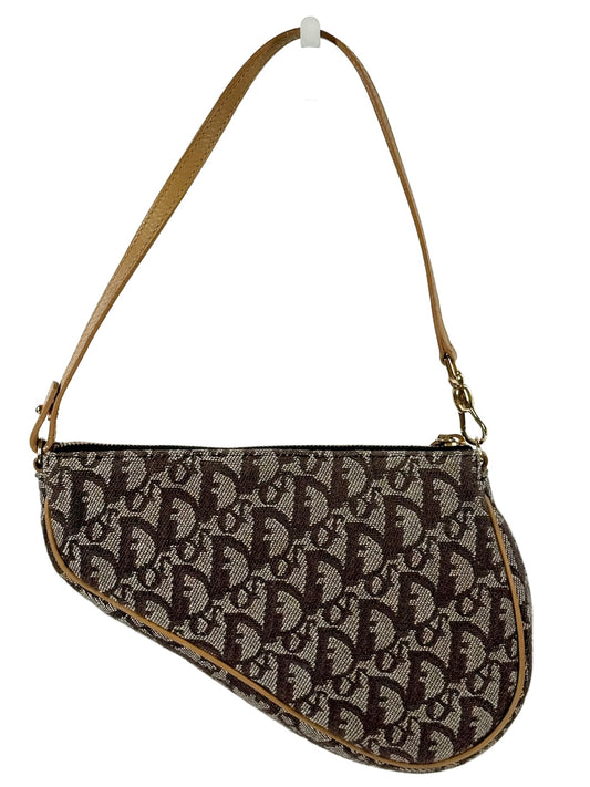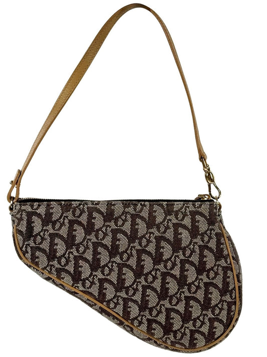 Dior Vintage 2001 Brown Trotter Monogram Mini Saddle Pochette Shoulder Bag