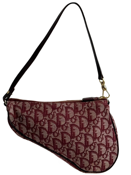 Dior Vintage 2002 Burgundy Trotter Monogram Mini Saddle Pochette Shoulder Bag