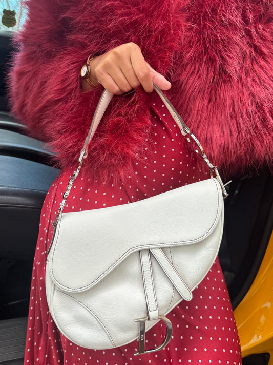 Dior Vintage 2004 White Pebbled Leather Medium Saddle Bag w SHW