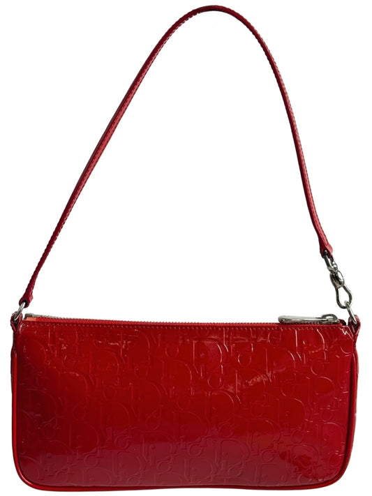 Dior Vintage Red Trotter Monogram Patent Leather Shoulder Pochette Bag