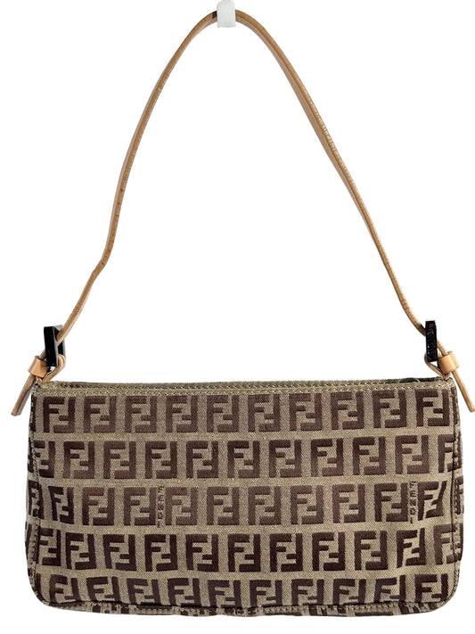 Fendi Vintage Brown Zucca Monogram Mini Croissant Baguette Bag