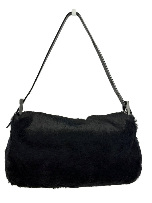 Fendi Vintage Black Rabbit Fur Shoulder Baguette Bag