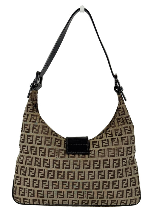 Fendi Vintage Light Brown Zucca Monogram Canvas Split Hobo Shoulder Bag