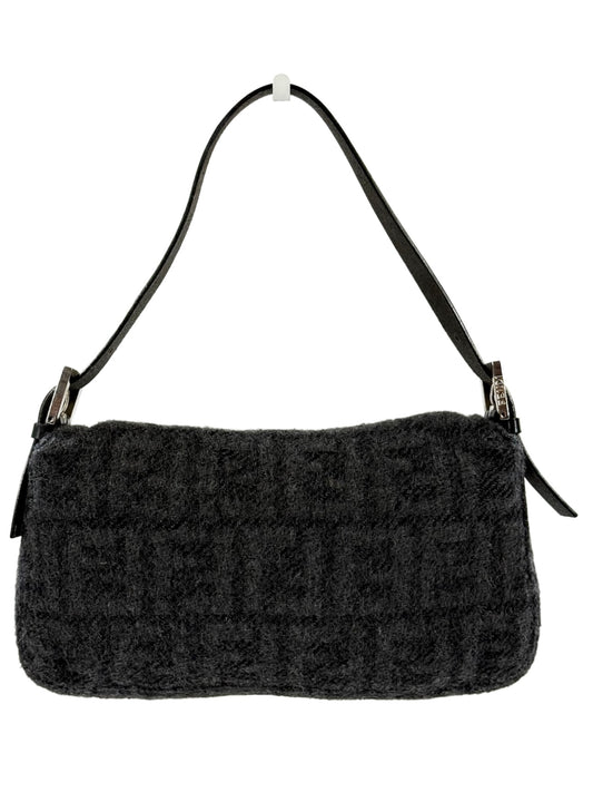 Fendi Vintage Gray Black Zucca Monogram Knit Wool Shoulder Baguette Bag