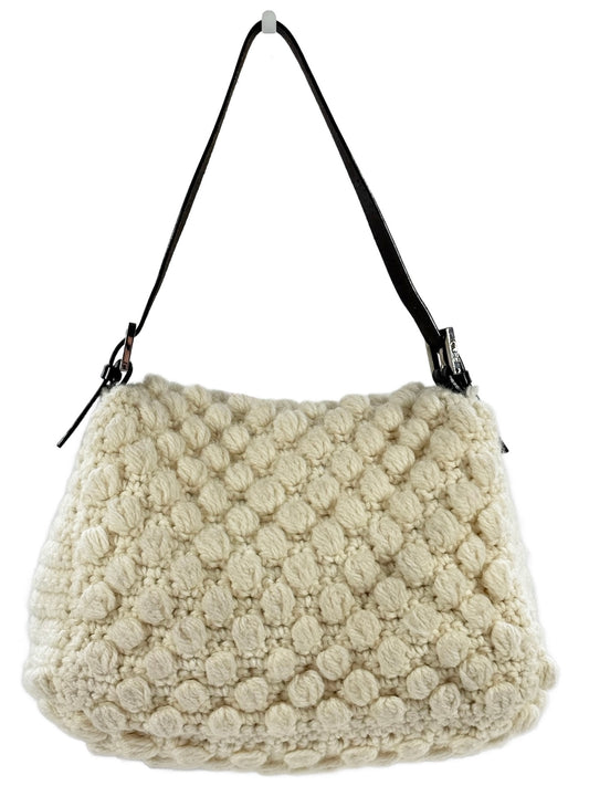 Fendi Vintage Ivory Crochet Knit Mamma Shoulder Baguette Bag