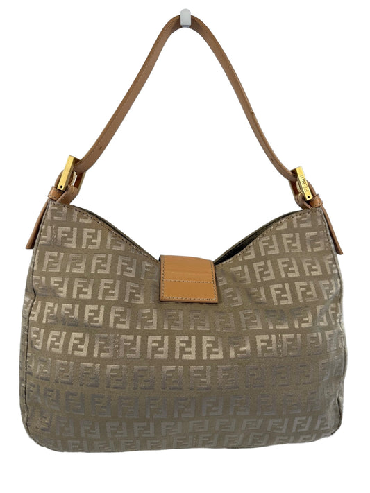 Fendi Vintage Beige Gold Zucca Monogram Hobo Shoulder Baguette Bag