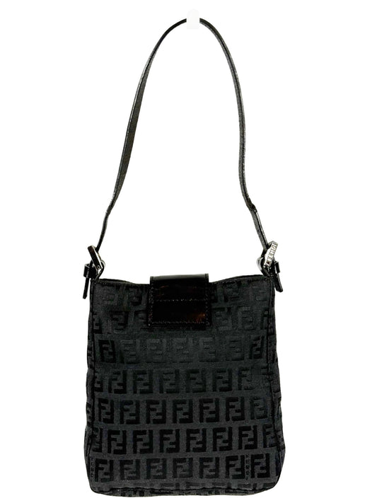 Fendi Vintage Black Zucca Monogram Phone Holder Pochette Baguette