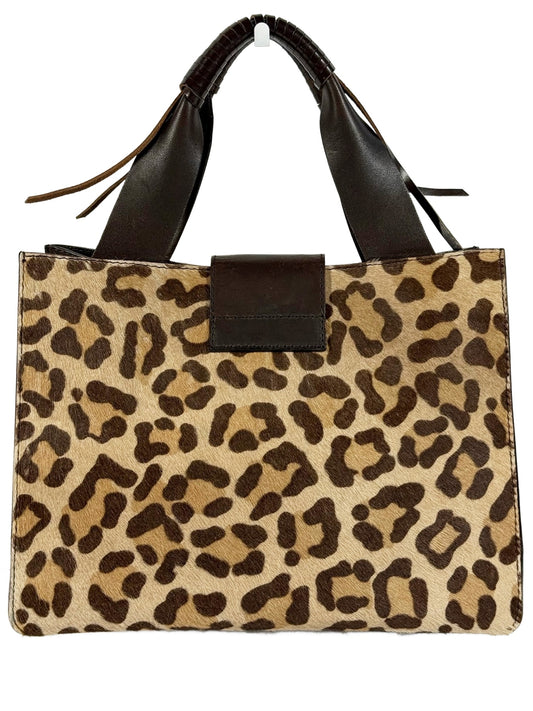 Dolce & Gabbana Leopard Print Pony Hair Brown Leather Trim Small Top Handle Bag