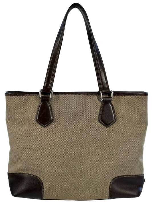 Prada Vintage Brown Jacquard Canapa Canvas Medium Shoulder Tote Bag
