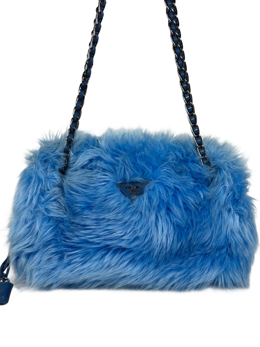 Prada Blue Faux Fur Medium Chain Shoulder Bag