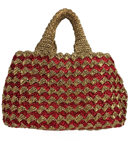 Prada 2012 Red & Brown Crochet Raffia Medium Canapa Tote Bag