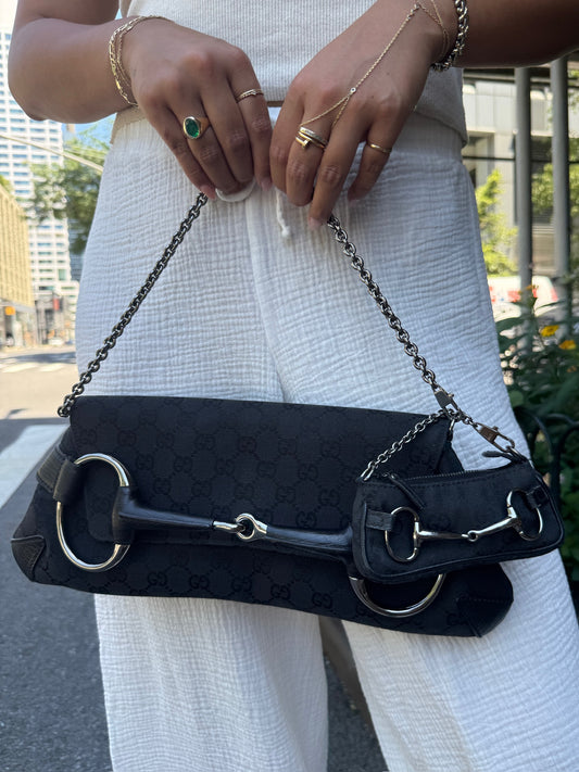 Gucci Vintage Black GG Monogram Micro Mini Horsebit Coin Purse Bag Charm