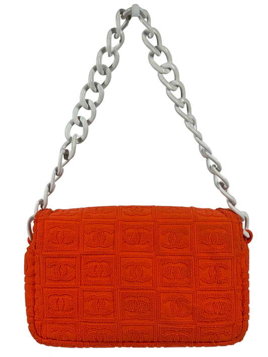 Chanel Vintage 00s Orange CC Logo Terry Cloth Sport Line Flap Bag w White Resin Chainlink Hardware
