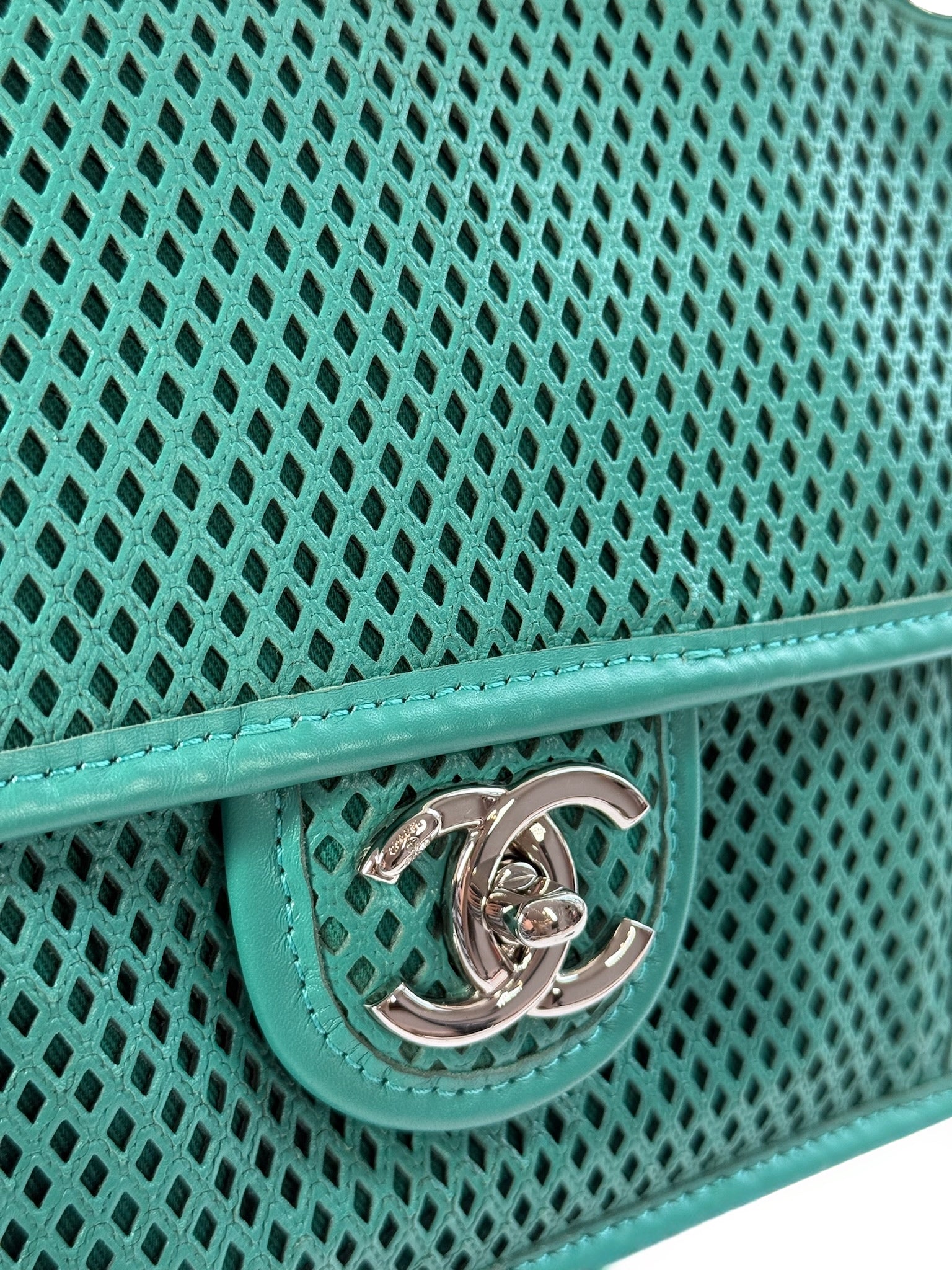 Chanel Turquoise Perforated Leather Square Flap Bag