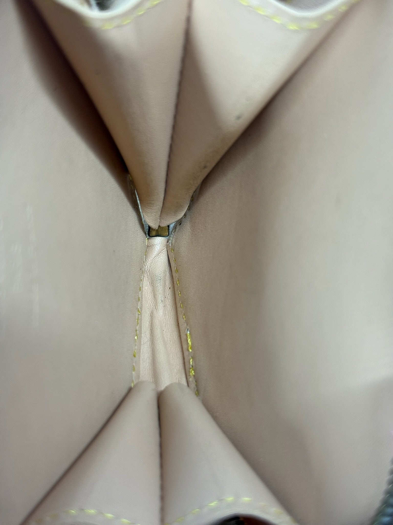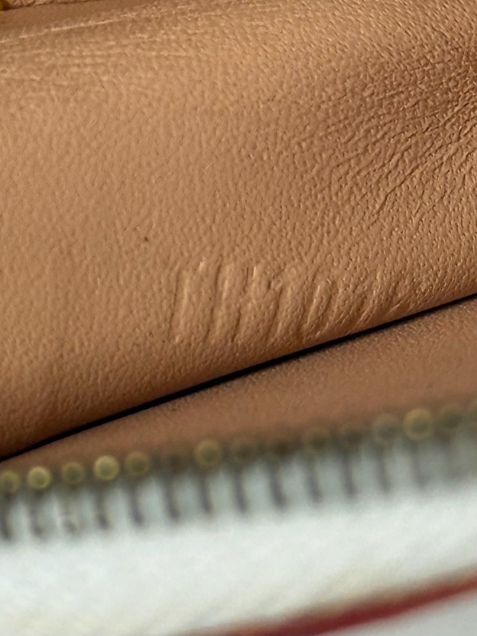 This piece is in great vintage condition with some glue stains on the zipper lining, as well as some light marks in the interior. No fading of the Multicolor.