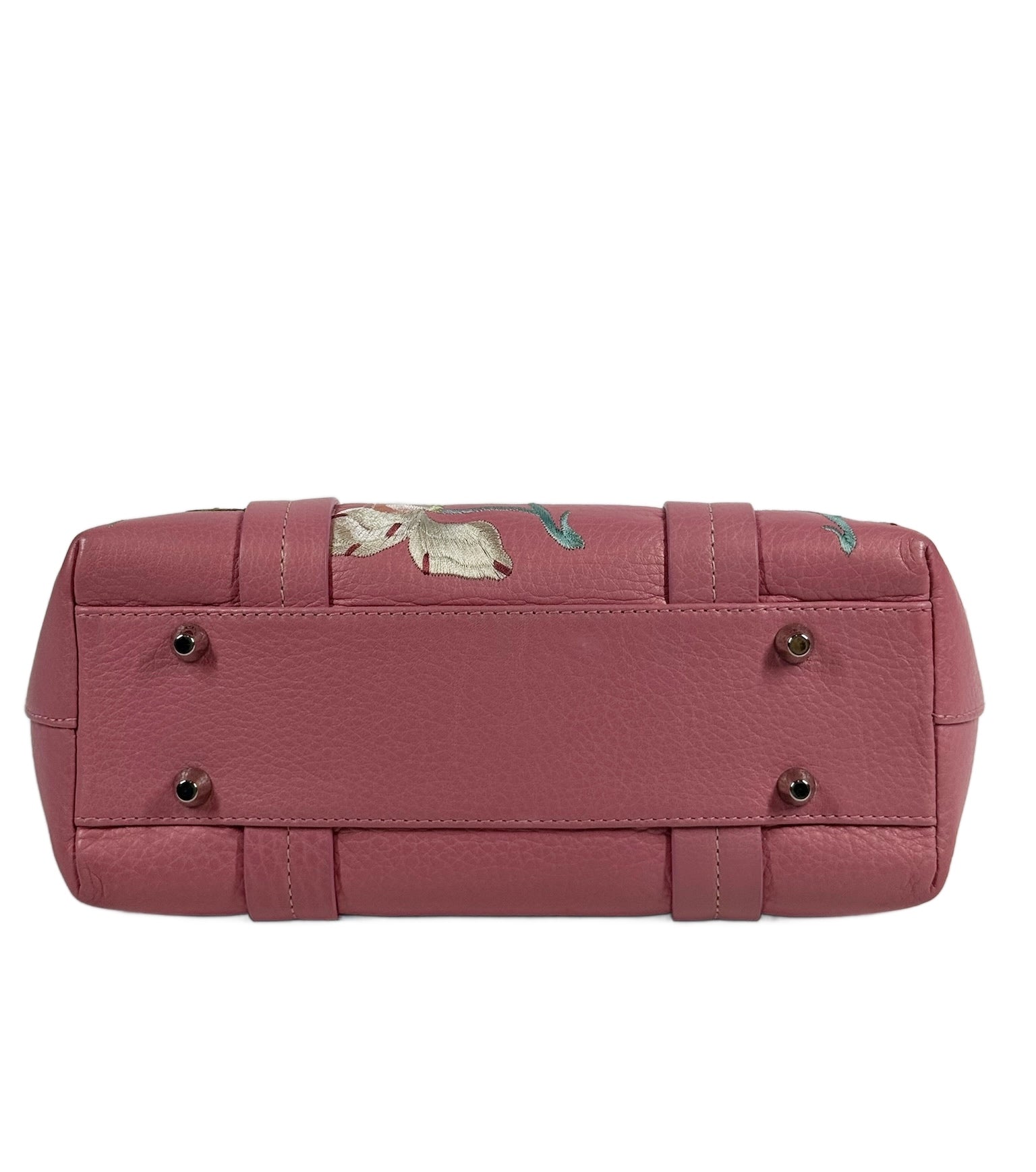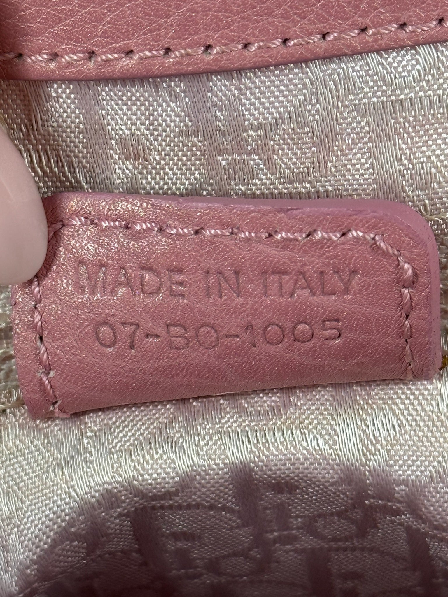 Dior Vintage 2005 Pink Embroidered Floral Leather Small Top Handle Tote Bag