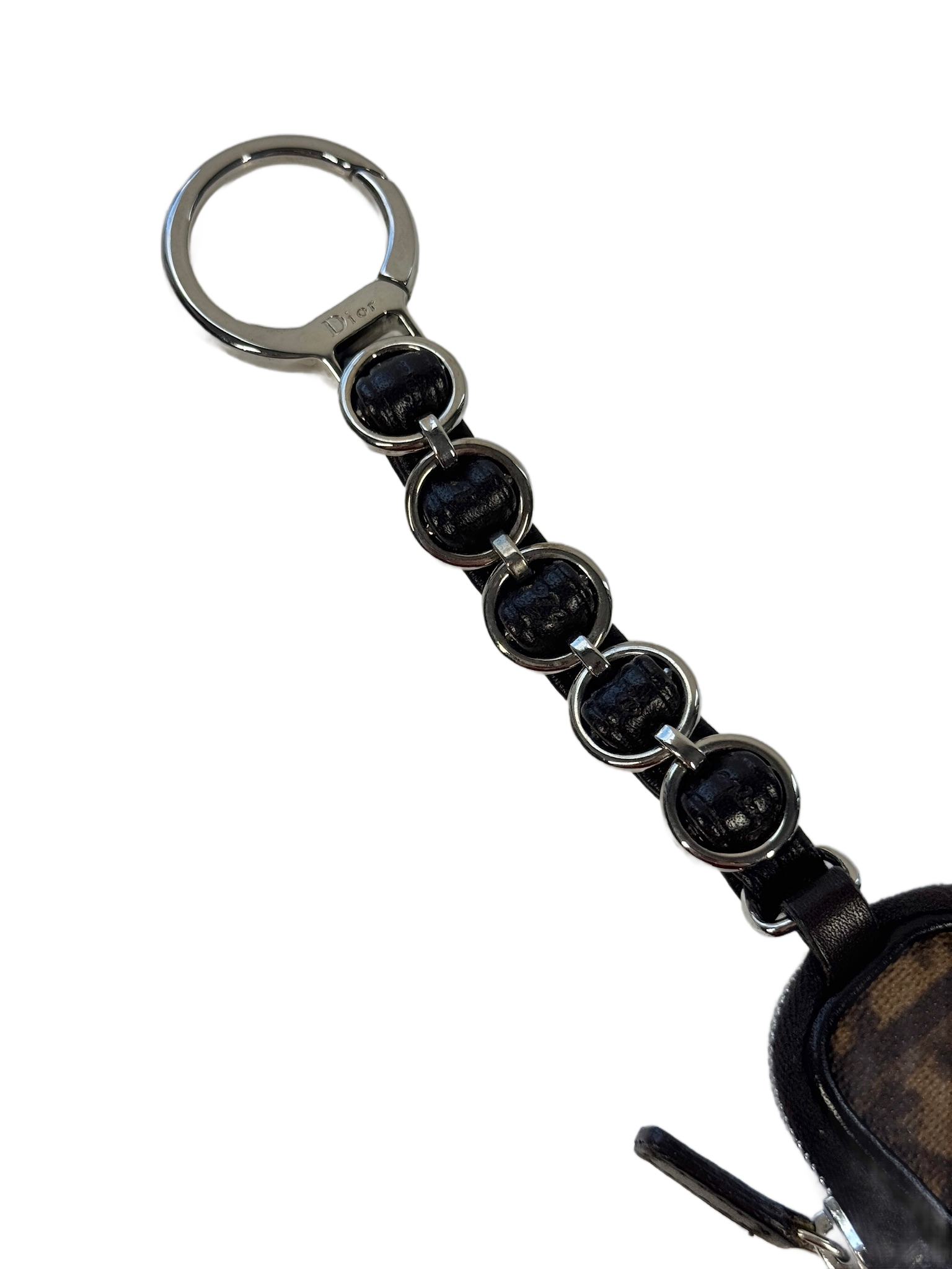 Be that girl with your lipstick in its own Dior bag. Crafted in classic brown Diorissimo monogram canvas with smooth leather trim, it features a charming bow detail and a dainty compartment perfect for lipstick. Use keychain or bag charm.