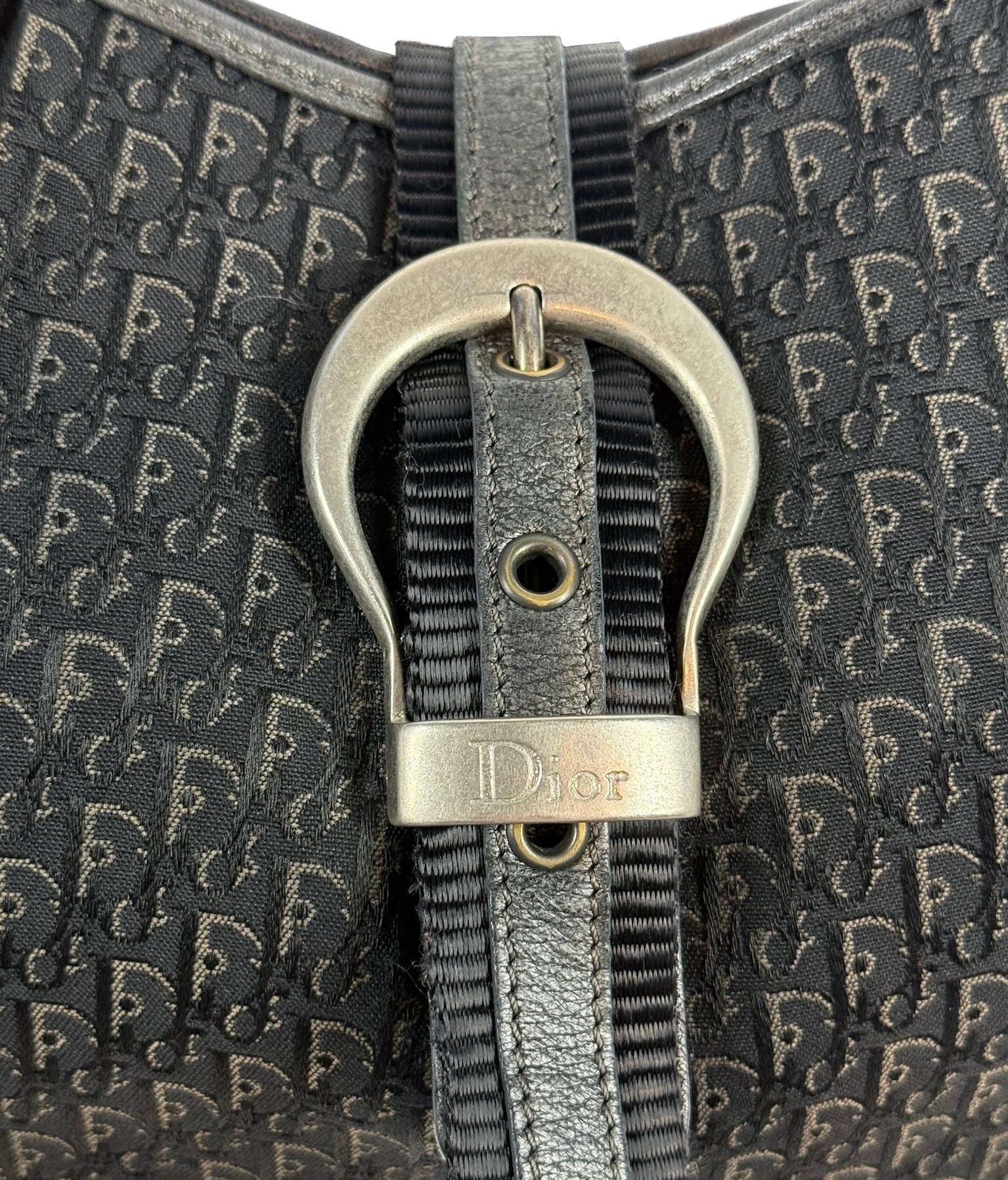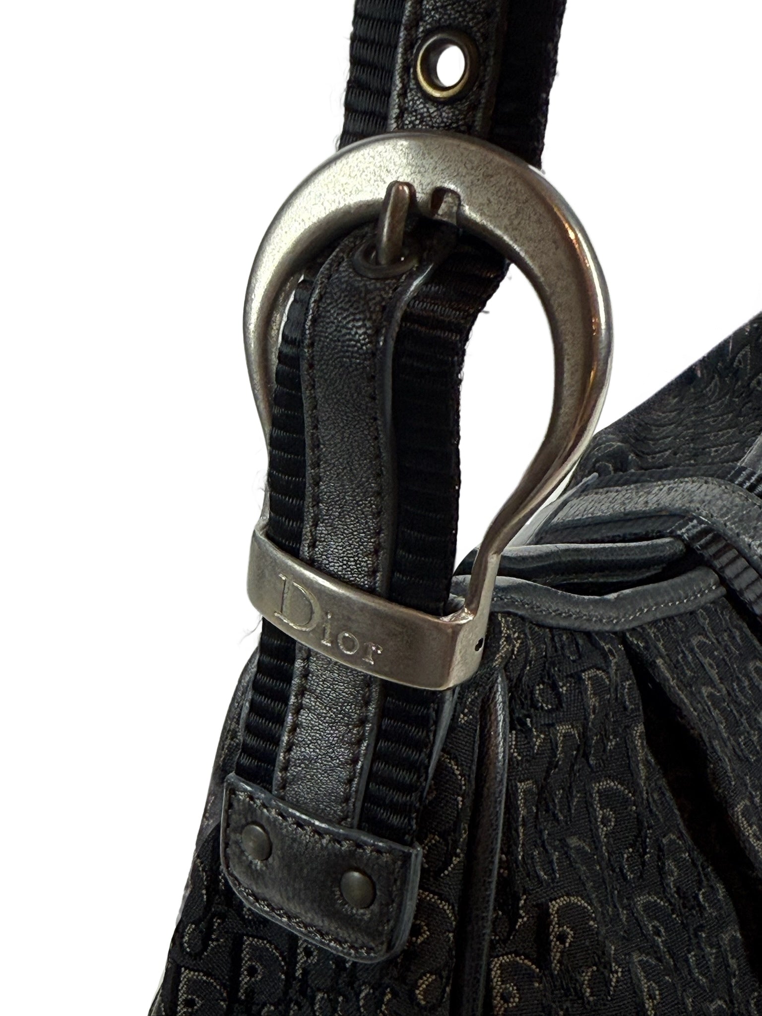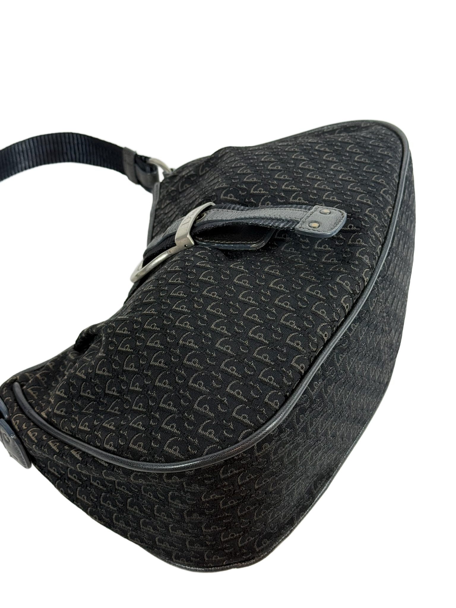 Dior Vintage Black Trotter Monogram Saddle Buckle Small Hobo Shoulder Bag