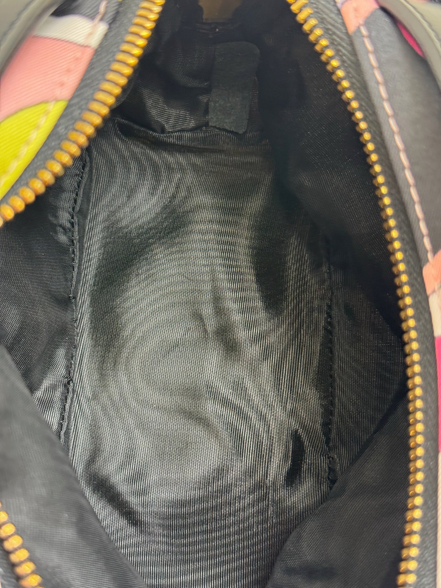 Emilio Pucci Multicolor Nylon Mini Top Handle Cosmetic Pouch Bag w Black Leather Trim