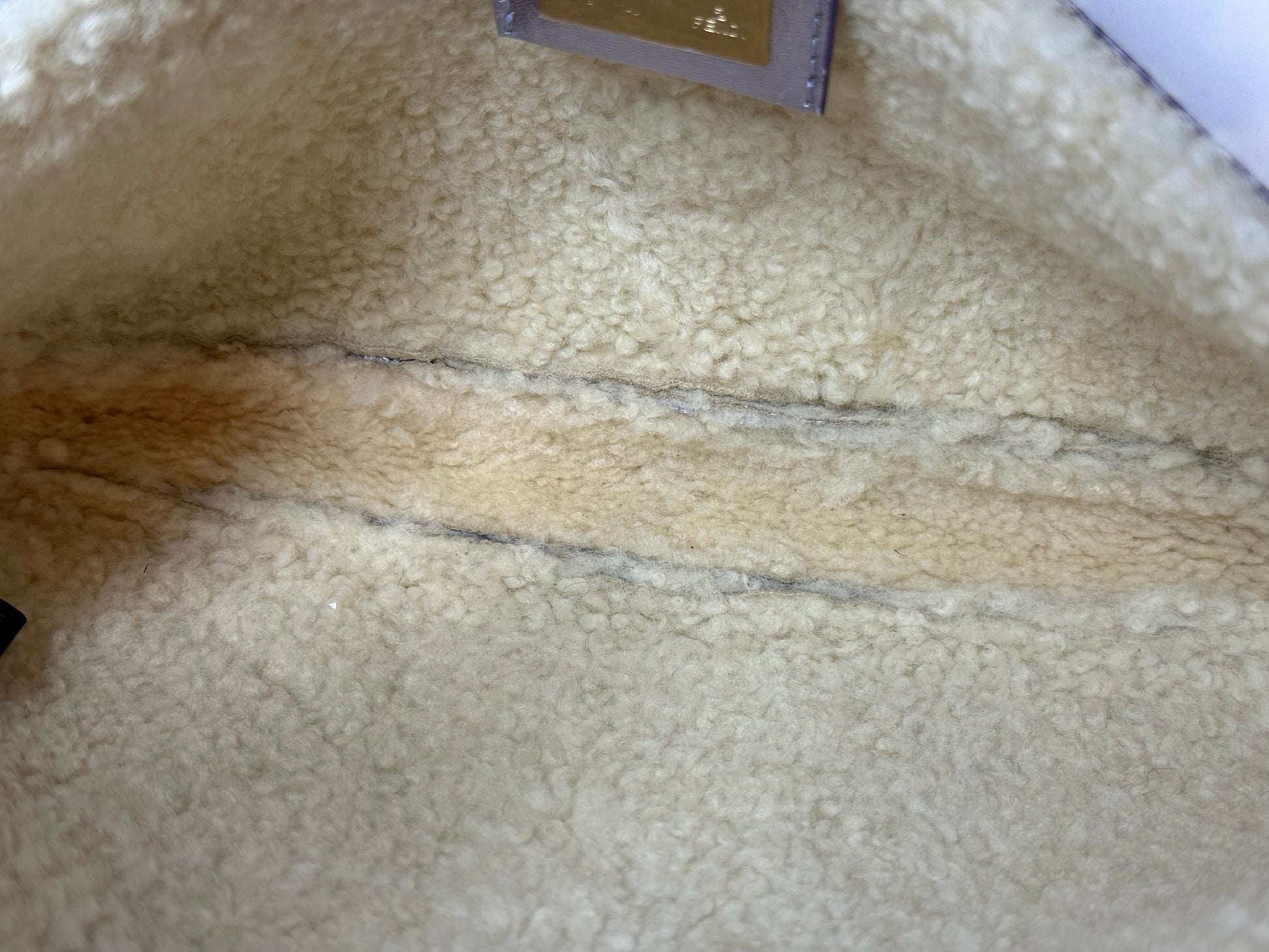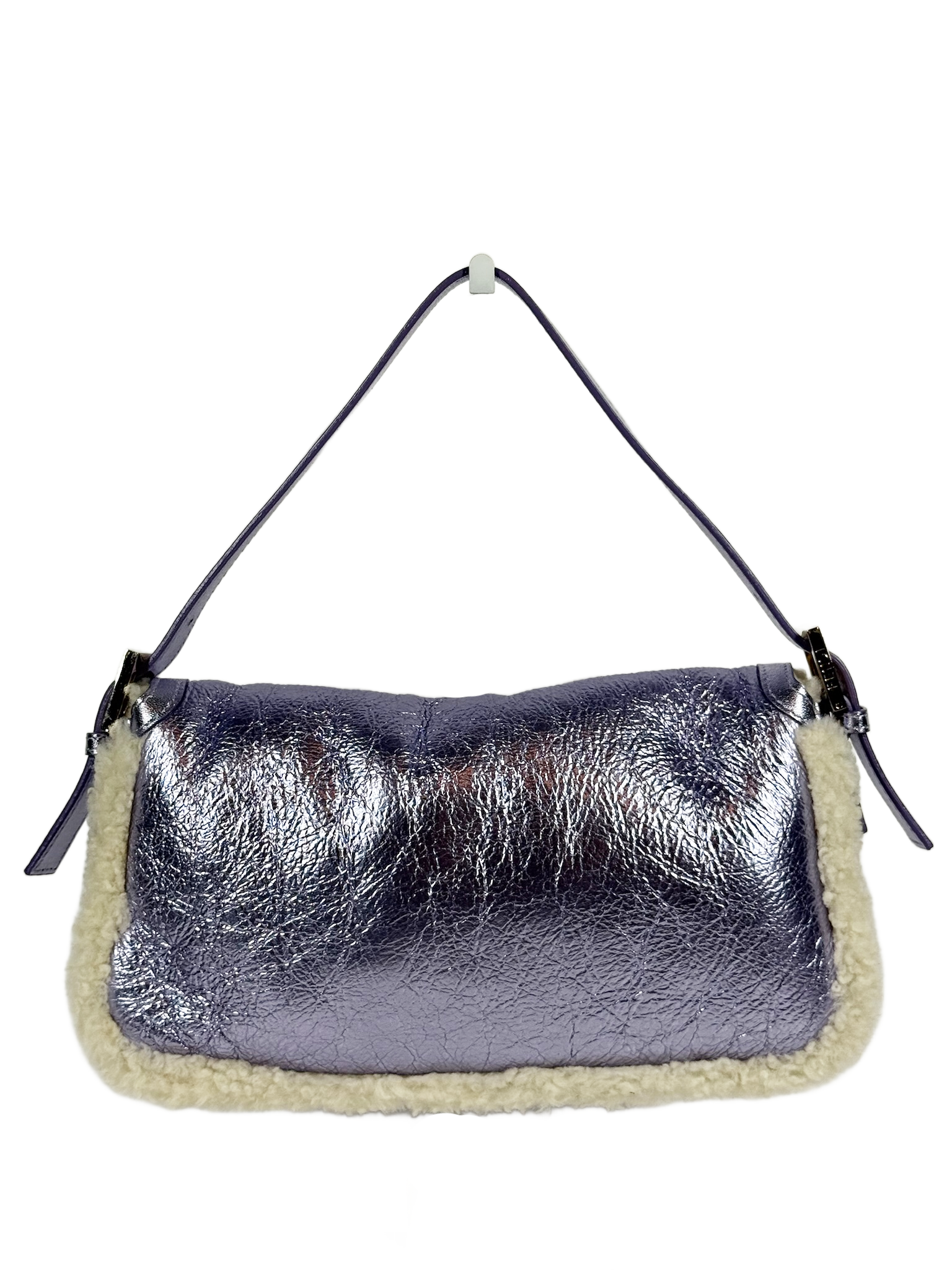 Fendi Metallic Purple Calfskin Shearling Trim Shoulder Baguette