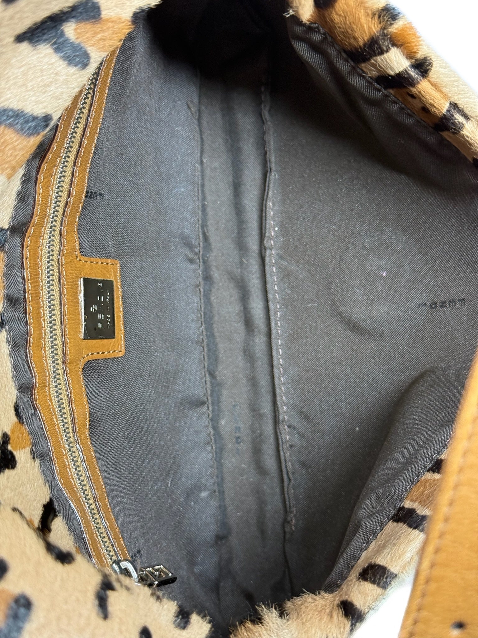 Fendi Vintage Beige Brown Leopard Print Pony Hair Shoulder Baguette Bag
