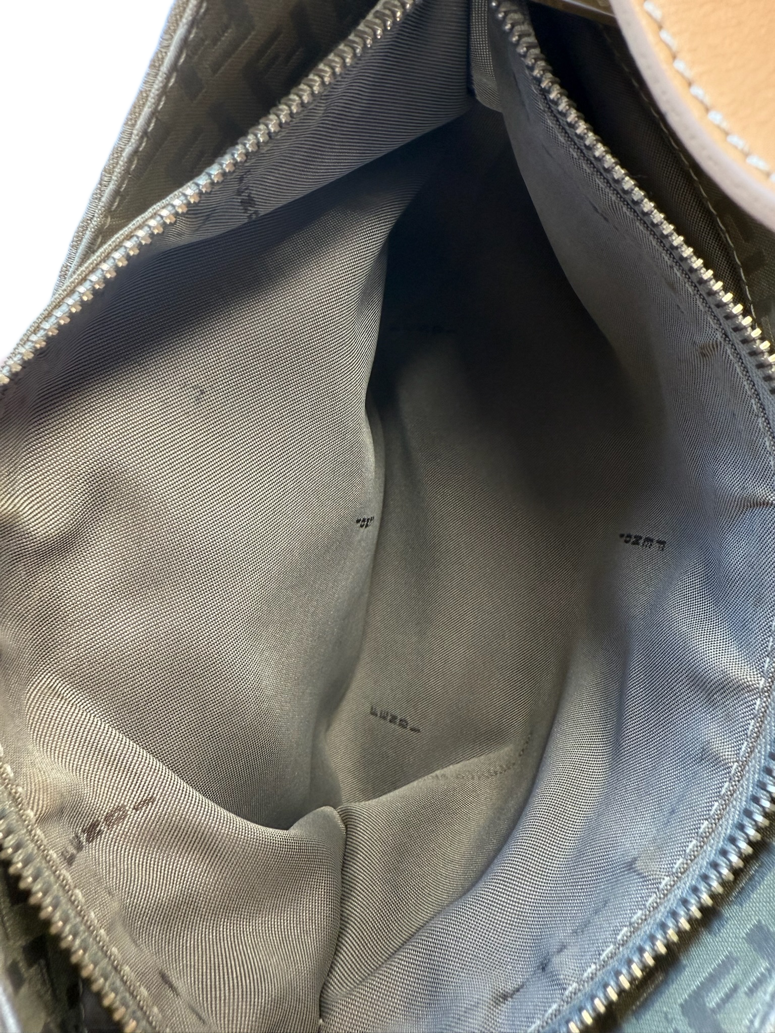 Fendi Vintage Beige Gold Zucca Monogram Hobo Shoulder Baguette Bag