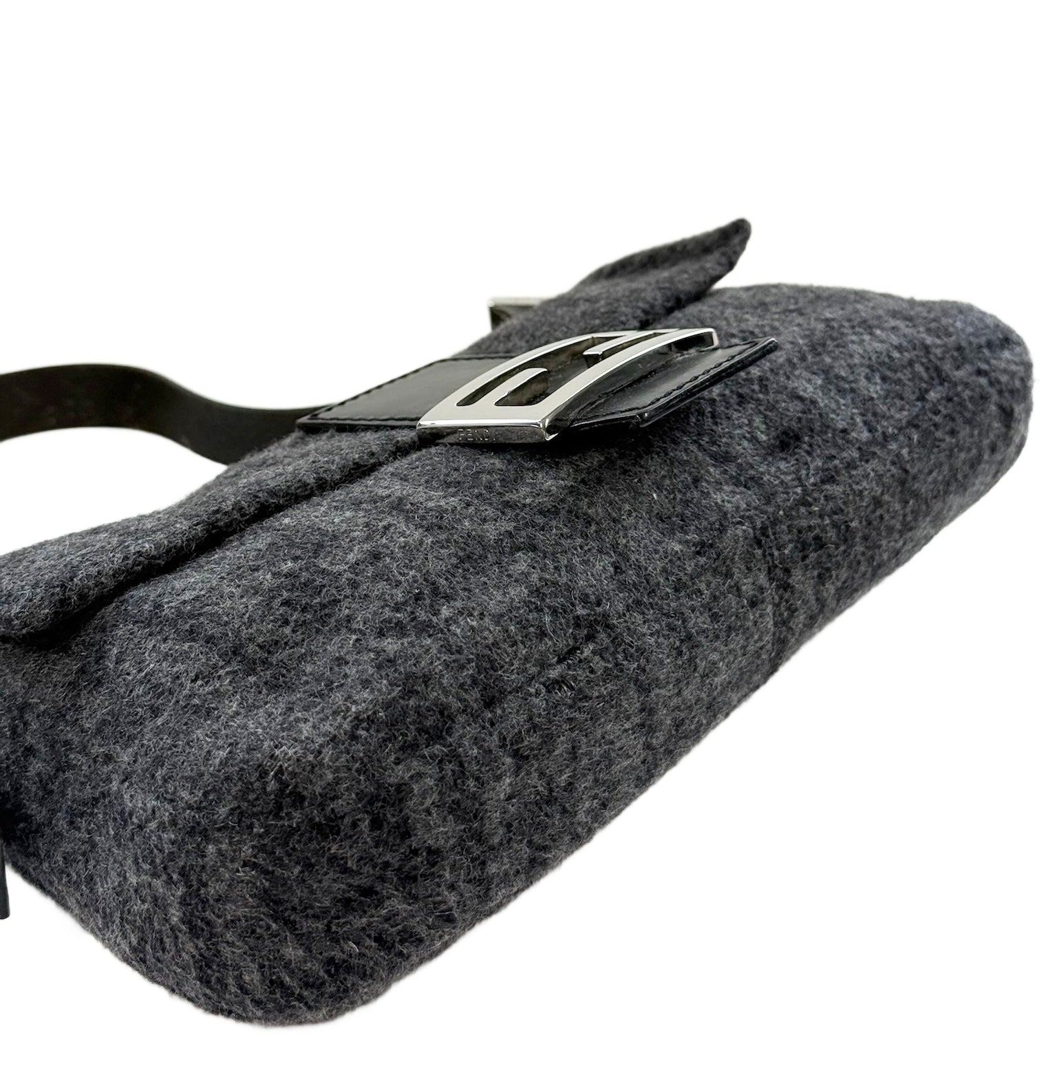 Fendi Vintage Gray Black Zucca Monogram Knit Wool Shoulder Baguette Bag