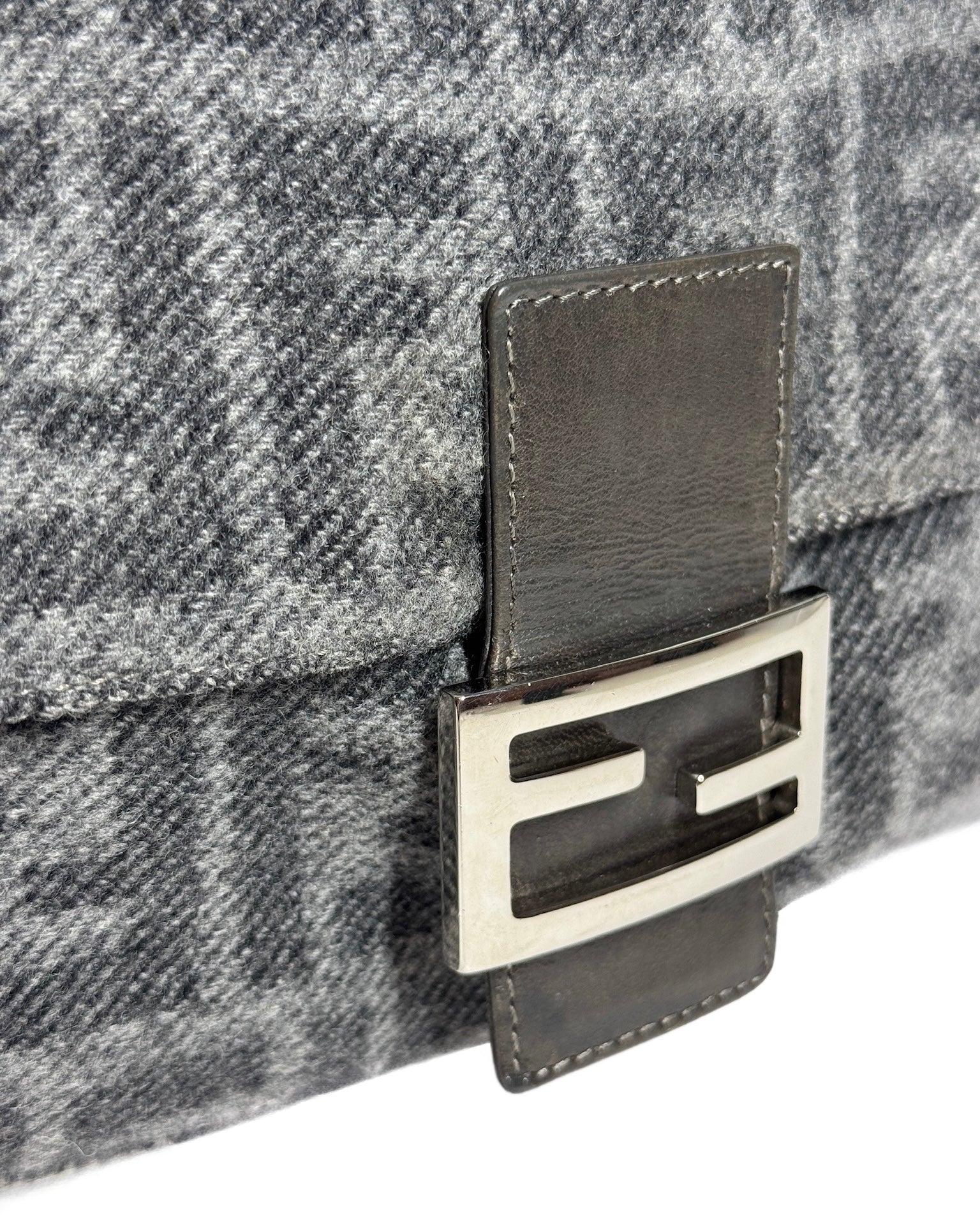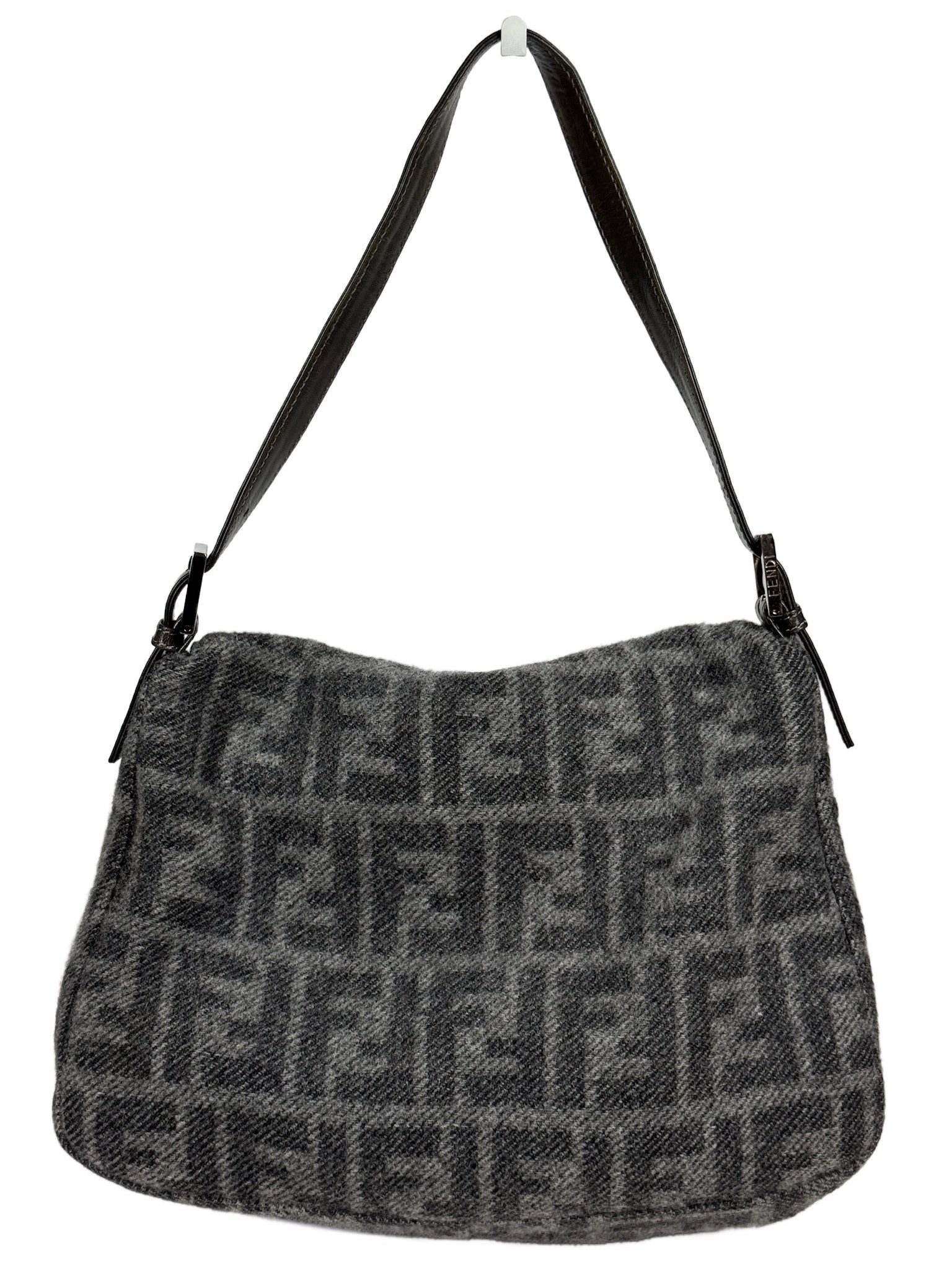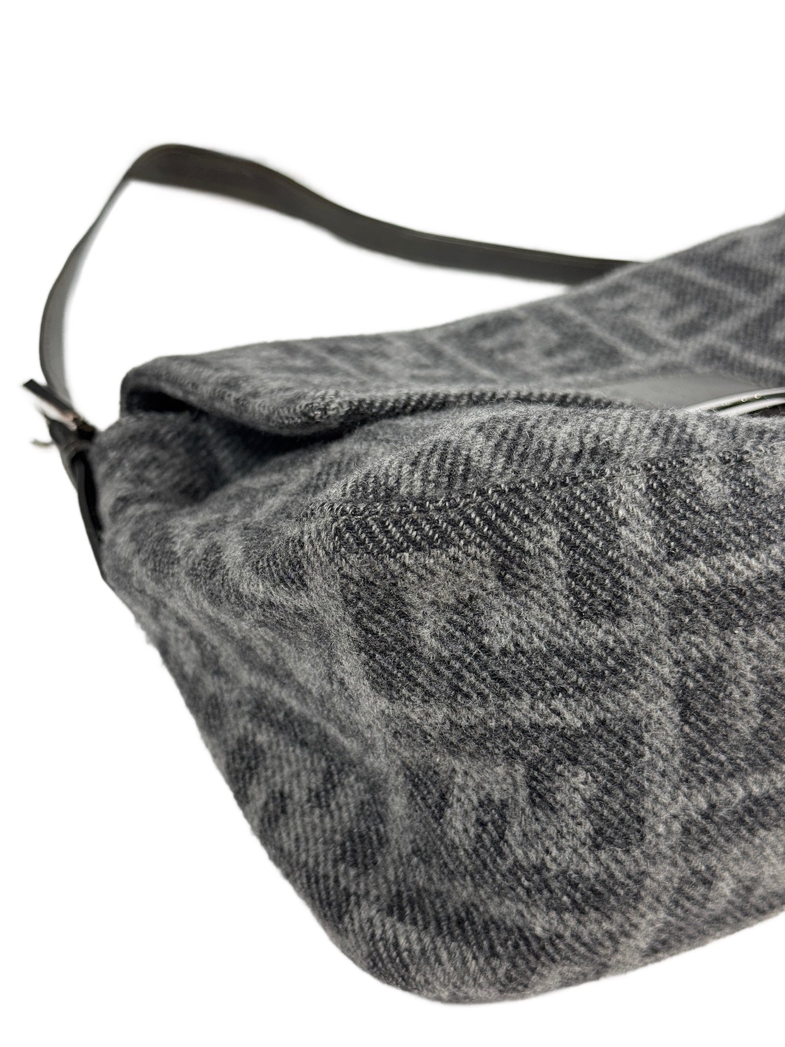 Fendi Vintage Gray Zucca Monogram Knit Wool Mamma Baguette Shoulder Bag