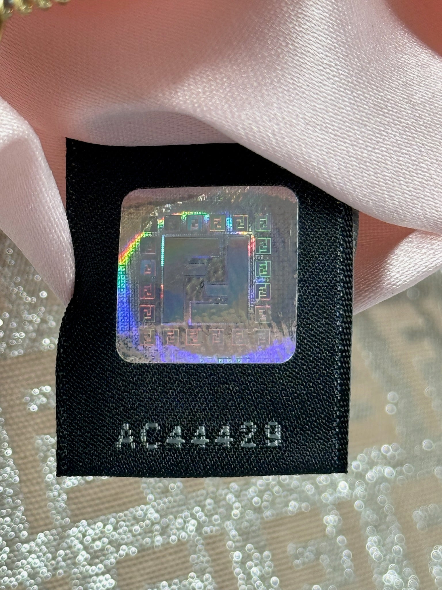 Fendi Vintage Light Pink Metallic Silver Glitter Zucca Monogram Double Flap Shoulder Baguette Bag