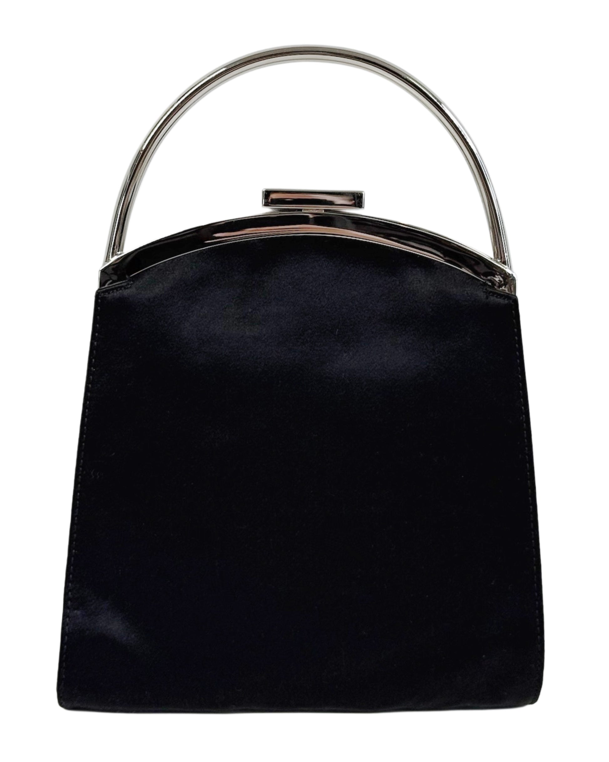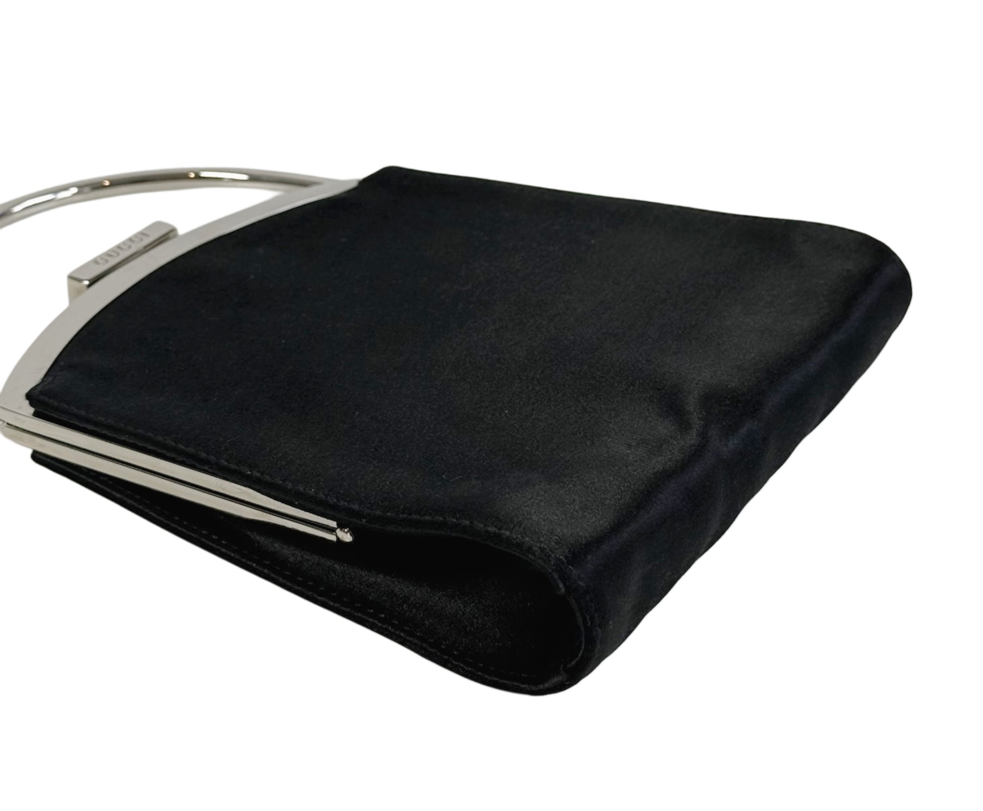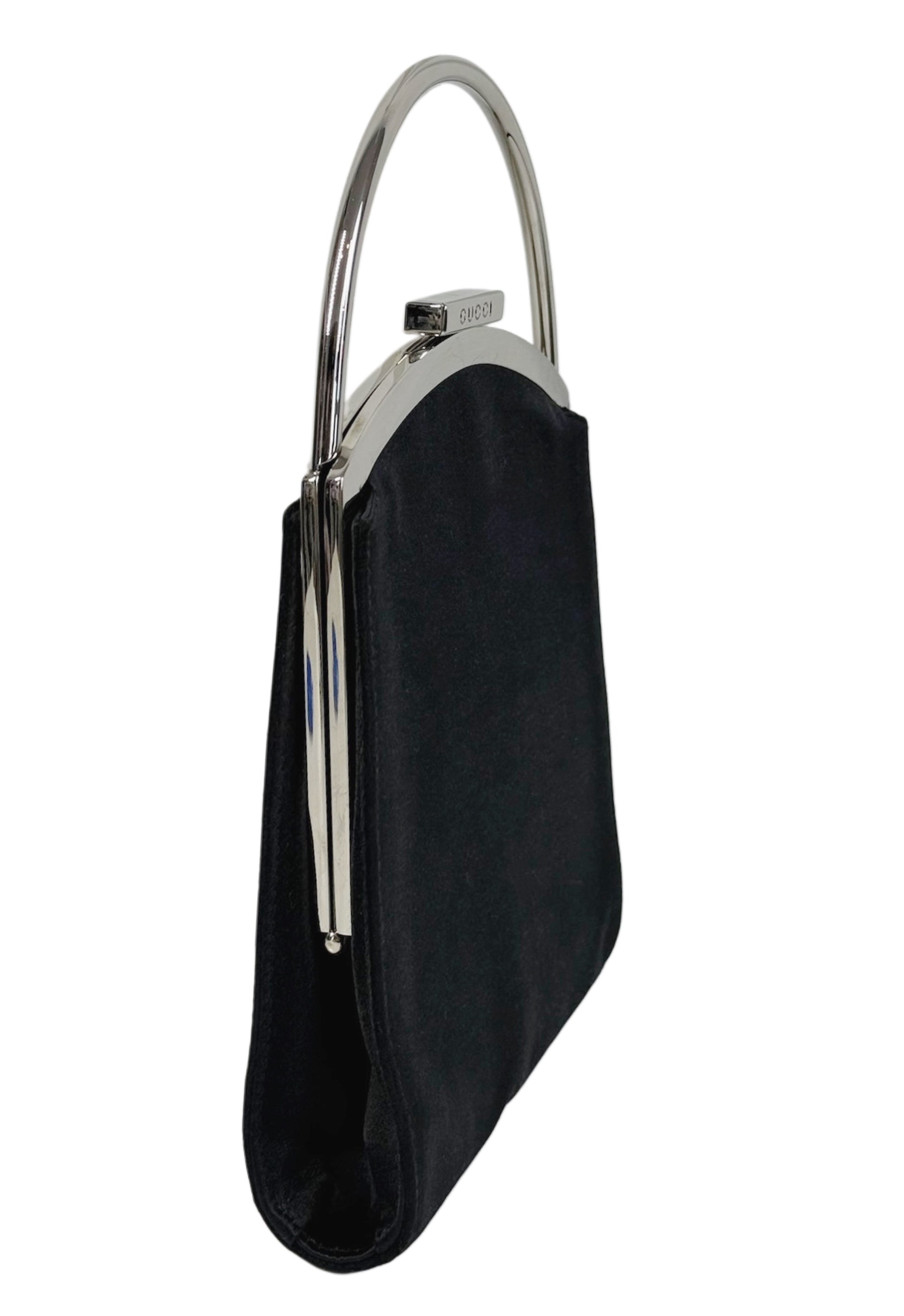 Gucci Vintage Tom Ford Era Black Satin Mini Metal Top Handle Kelly Style Evening Clutch Bag