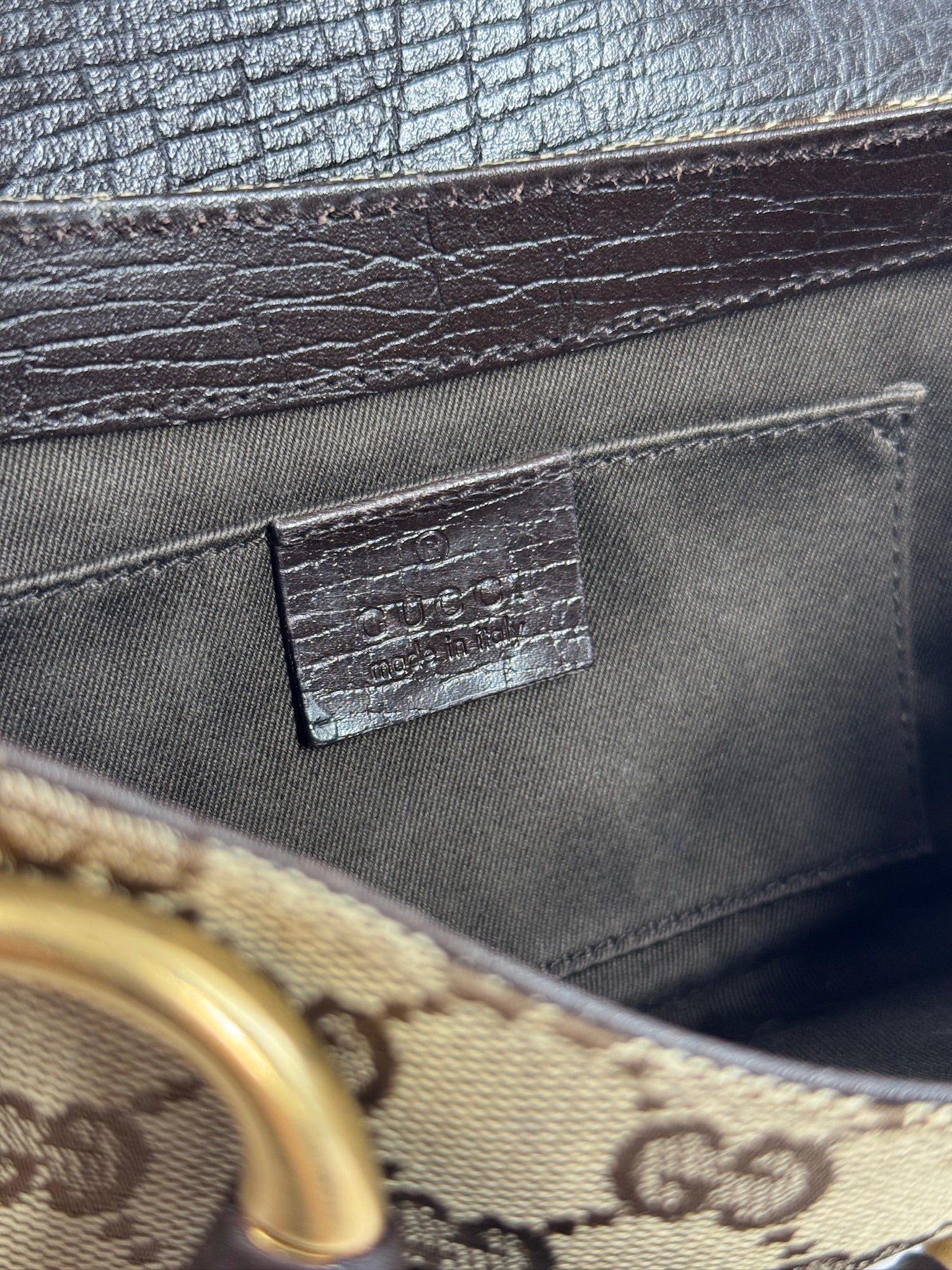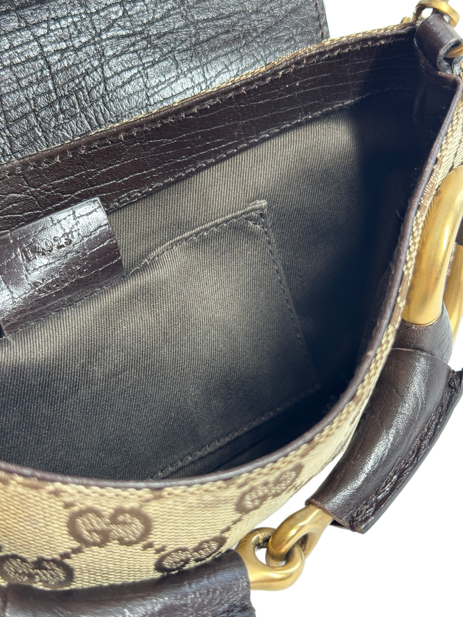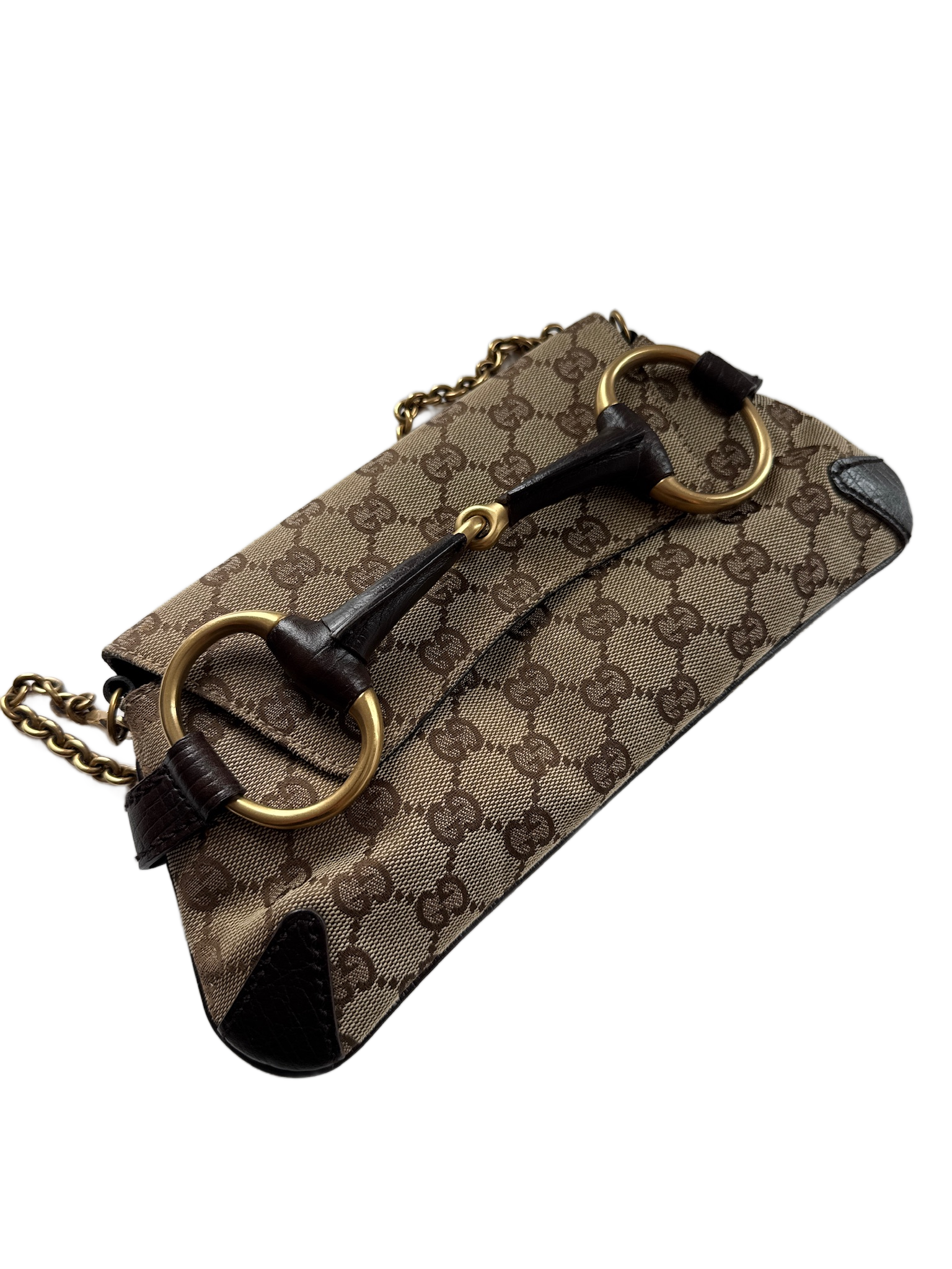 Gucci Vintage Brown GG Monogram Horsebit Small Chain Shoulder Clutch Bag