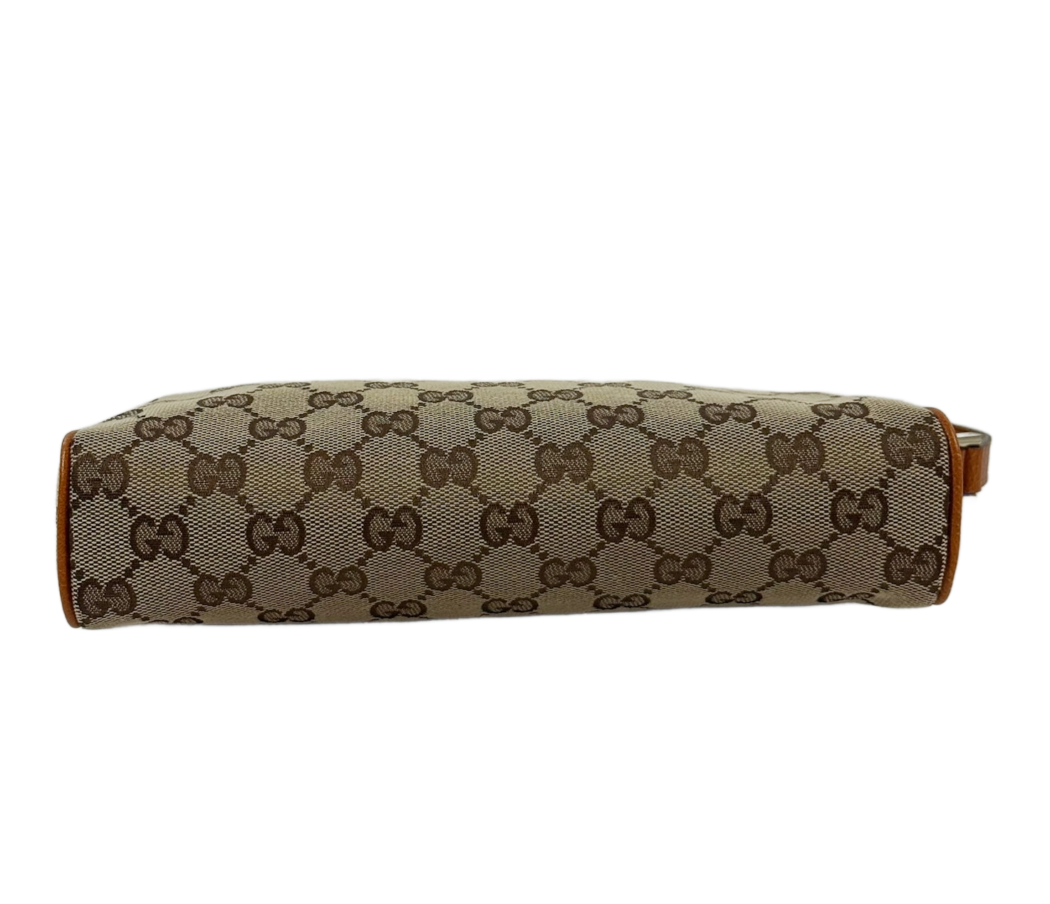 Gucci Vintage Brown GG Monogram Orange Leather Trim Abbey Pochette