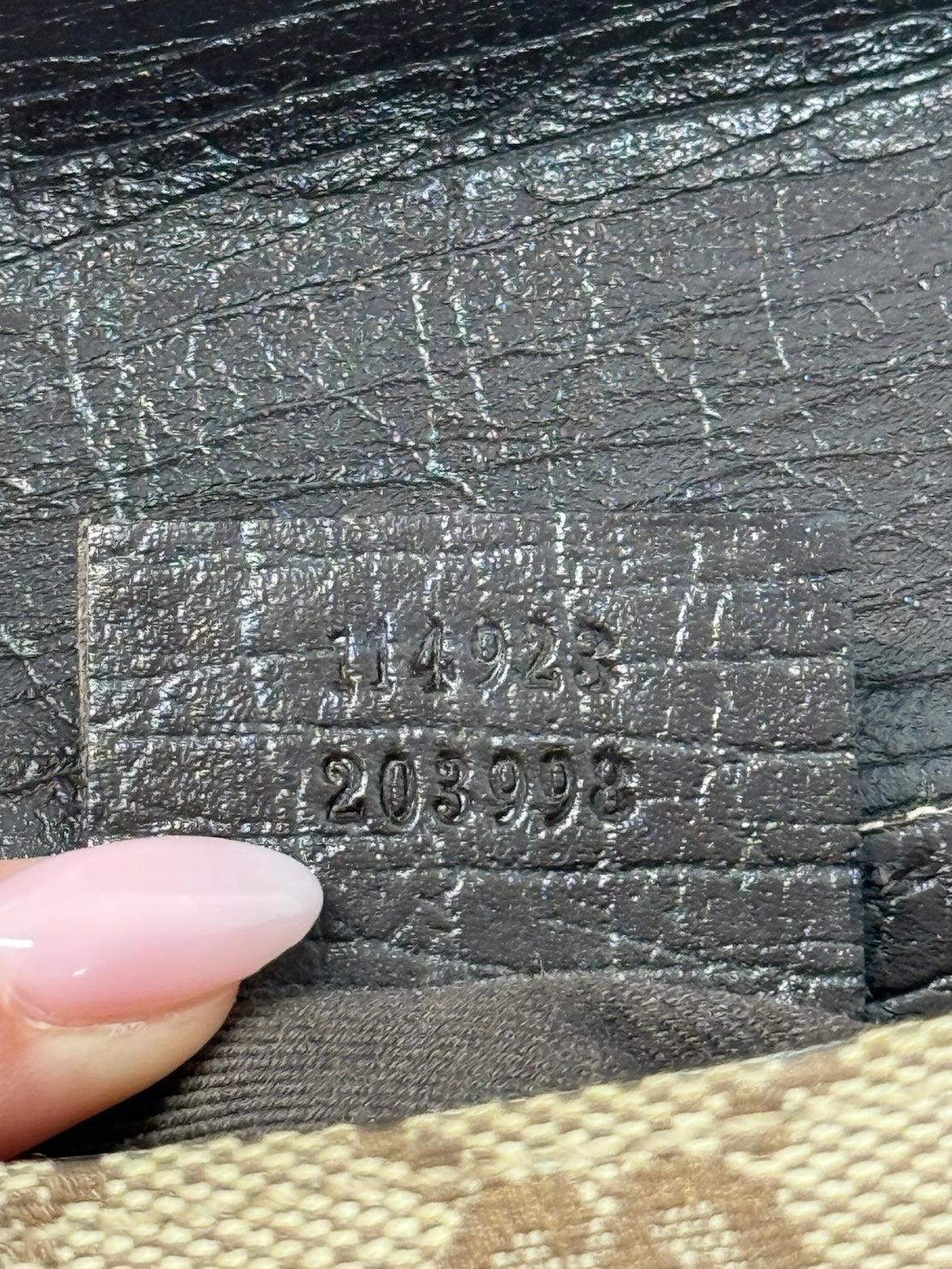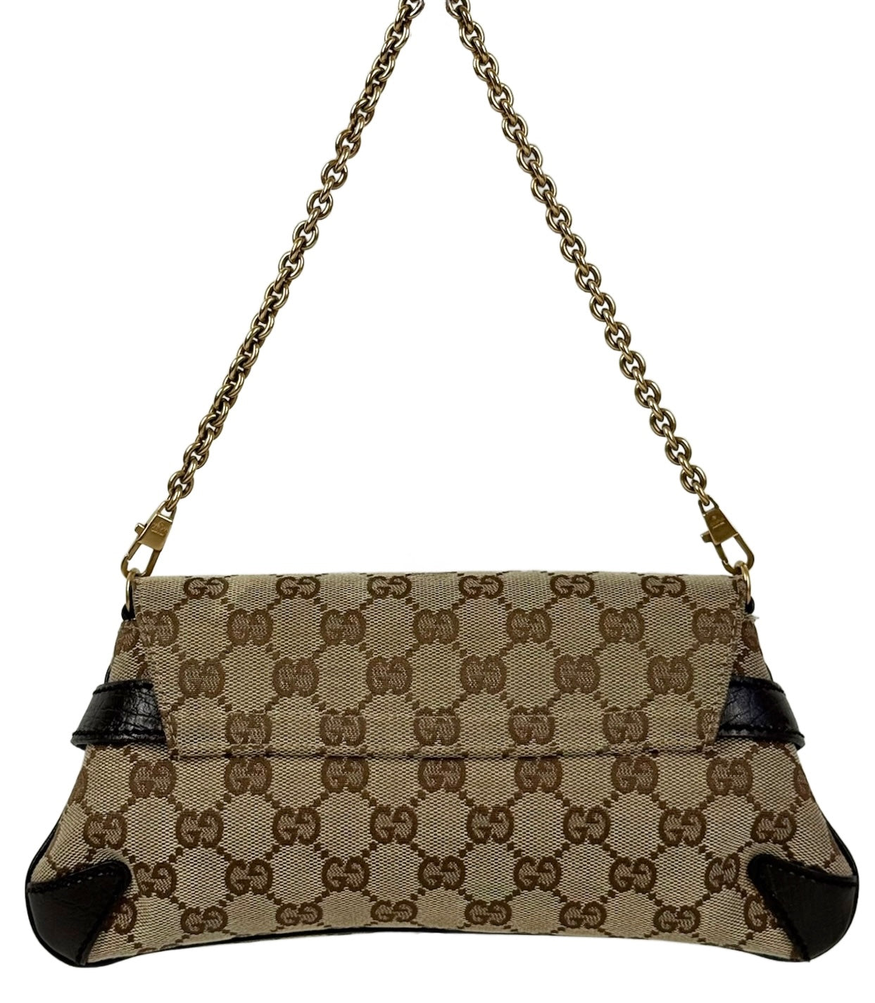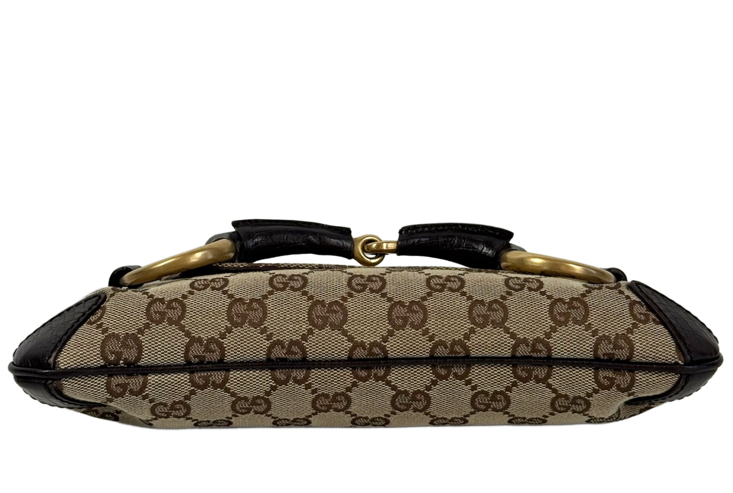 Gucci Vintage Brown GG Monogram Small Horsebit Shoulder Clutch Pochette Bag