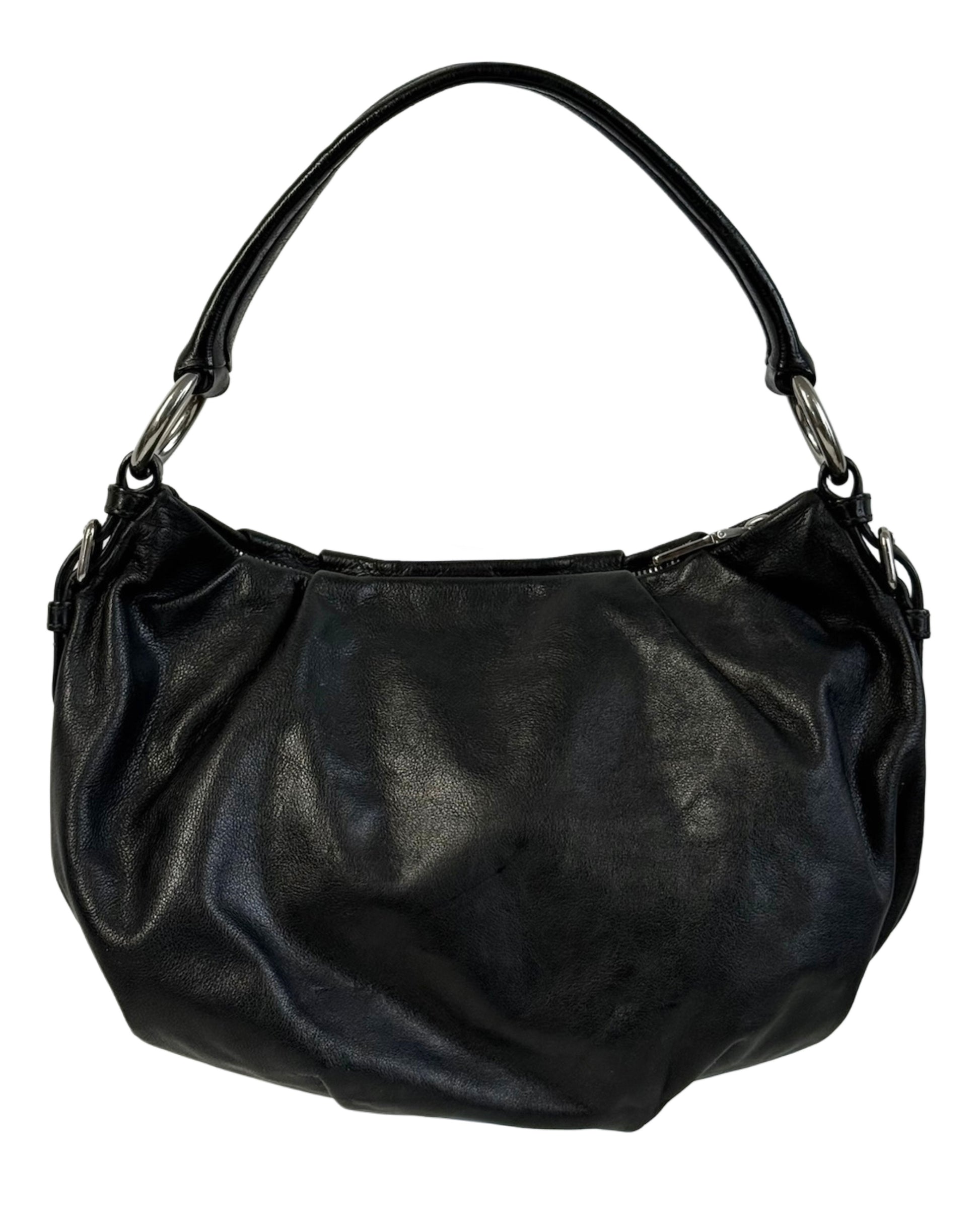 Prada Vintage Black Pebbled Leather Small Shoulder Hobo Bag